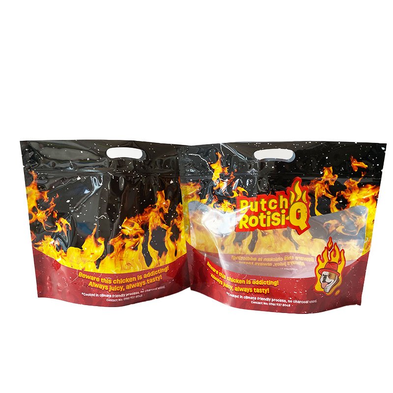 2.This style chicken bag can be customized with the shape of the handle, the style of the sealing strip, and the width of the bottom flap. It also has a design cavity to allow a clear view of the interior.